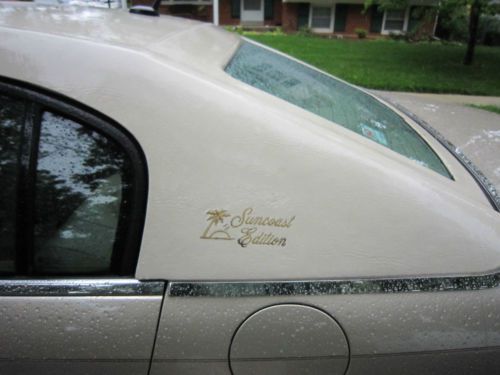 All the systems work: radio, power windows, power drivers seat, interior lights, exterior lights. There are even vents for the rear seat passengers. Features: This is a Suncoast edition. It has the vinyl top with the Suncoast Edition logo (see picture). This feature was added by the dealer prior to purchase. The top is in great shape, with no signs of wear or deterioration. Leather interior, and power front seats (driver and passenger). Onstar equipped. AM/FM Radio with CD player, steering wheel control for cruise control, radio, and phone functions. Has OnStar capability, but it is not currently active. All leather interior, rides like a dream. History: Original owner. Shipping and payment: $500 due by PayPal within 48 hours of auction ending; balance by certified check at time of pick-up. I will arrange for shipping, buyer to cover cost. Title is clear, no liens. A note on bidding: Please don't bid if you don't intend to purchase the car. Also, don't bid if you then ask me to lower the price, or go outside of eBay to finish the transaction. Before you bid, if you have questions, ask me. If you want to see the car, contact me, we can arrange something. If you want a photo of something specific, I can send it. The ending eBay price is the price I expect the winner to pay, and I won't negotiate after the auction closes. That's not fair to other bidders. Also, please note: this is an 8 year old car. While it is in great shape, there are some dings, there may be a loose stick somewhere, there could be a scuff here and there. It's not showroom perfect, but then you're not paying that premium for a showroom perfect car with 3 miles on it. ITEM IS ALSO FOR SALE LOCALLY SO I RESERVE THE RIGHT TO END THE AUCTION EARLY. |