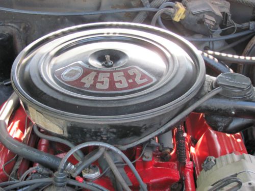THIS CAR HAS BEEN IN THE SAME FAMILY SINCE NEW. IT WAS ORDERED WITH A 455 ENGINE AND TURBO 400 AUTOMATIC TRANSMISSION. IT HAS NEVER BEEN IN AN ACCIDENTS , THERE ARE NO DENTS. IT HAS BEEN GARAGED MOST OF THE TIME AND WAS REPAINTED ONCE. IT NEEDS THE PLASTIC PIECES ABOVE THE REAR TAILLIGHTS AND A FRESH PAINTJOB. THE CAR IS SOLID AND RUNS GREAT. THE INTERIOR IS IN GOOD SHAPE , NOT TORN OR RIPPED. IT DOES HAVE AIR CONDITIONING THAT WAS ADDED AFTER IT WAS BOUGHT. IT HAS THE ORIGINAL FACTORY MAGS, IN VERY GOOD CONDITION. WHILE NOT IN SHOWROOM CONDITION, A LITTLE TENDER LOVING CARE IS JUST WHAT IT NEEDS.