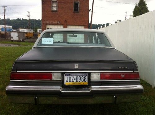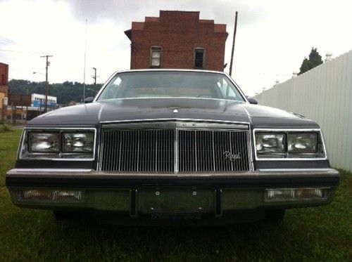 THIS IS A ONE OWNER A TITLE CAR. THE VEHICLE IS ALL ORIGINAL WITH APROX 21,983 MILES. THE REAR TIRES ARE ORIGINAL UNIROYAL. THE CAR RUNS AS YOU WOULD EXPECT, PERFECT. THE HEADLINER IS STARTING TO DROOP, AND THE FILLER PANELS WHICH GO BETWEEN THE BUMPERS AND THE BODY ARE CRACKED FROM AGE. THIS IS NOT UNCOMMON AND ARE VERY CHEAP TO REPLACE. THE VEHICLE WAS ALWAYS PARKED IN A GARAGE. THE LANDAU ROOF IS EXCELLANT AND IS STILL SOFT. BODY LINES ARE STRAIGHT. ORIGINAL DOOR PINS. NEVER IN AN ACCIDENT. THE PAINT IS ORIGINAL. THE HOOD ORNAMENT IS IN THE GLOVE BOX ALONG WITH ALL ORIGINAL OWNERS MANUAL AND PAPERWORK. THE INTERIOR IS EXCELLANT. NO CRACKS IN THE DASH PAD. ORIGINAL RADIO. THIS REGAL IS COMPLETLY ORIGINAL, UNTOUCHED AND IN BEAUTIFUL CONDITION. THE FRAME AND FLOORS AND PERFECT. VEHICLE HAS AC AND CRUISE CONTROL.BOTH WORK. THE AC COMPRESSOR CYCLES. IF ANYTHING IT MAY NEED A LITTLE FREON. BUT THE AIR CONDITIONING WORKS. THE BOTTOMS OF THE DOORS ARE VERY CLEAN. YOU CAN DRIVE HER HOME. RUNS PERFECT! THANK YOU FOR TAKING THE TIME TO LOOK. MY NAME IS BRIAN IF YOU HAVE ANY ADDITIONAL QUESTIONS.