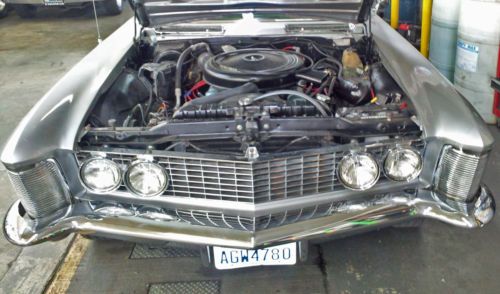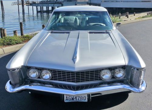 Over $40,000 into full nut & bolt professional restoration of this gorgeous classic Jackie O Palm Springs retro style muscle car cruiser. Less than 1,000 miles on car since complete rebuild. -Freshly built 401 nailhead, balanced and blueprinted. New components throughout. -Rebuilt Turbo 400 transmission with warranty. -New exhaust system front to back. -New cooling system with new components throughout. -New suspension with new components throughout. New high performance tires. -New updated brake system with new components throughout. -New Interior! Flawlessly finished in stunning silver leather. -All electrical systems function properly. -Power seats. Power windows. -New show quality chrome finish on all bumpers and other trim parts. -New show quality factory metallic silver paint. -All glass is perfect. -Marcus - Four two five. five nine one. six two seven two. This is a beautifully restored example of a rare and desirable classic American muscle car cruiser. Call Marcus to discuss in further detail. 425.591.6272 The production Riviera shared its bodyshell with no other model, which was unusual for a GM product. It rode a cruciform frame similar to the standard Buick frame, but shorter and narrower, with a 2.0 in (51 mm) narrower track. Its wheelbase of 117 in (3,000 mm) and overall length of 208 in (5,300 mm) were 6.0 inches (150 mm) and 7.7 in (200 mm) shorter, respectively, than a Buick LeSabre, but slightly longer than a contemporary Thunderbird. At 3,998 lb (1,813 kg), it was about 390 pounds (180 kg) lighter than either. It shared the standard Buick V8 engines, with a displacement of either 401 cu in (6.57 L) or 425 cu in (6.96 l), and the unique continuously-variable design Twin Turbine automatic transmission. Power brakes were standard, using Buick's massive "Al-Fin" (aluminum finned) drums of 12 in (300 mm) diameter. Power steering was standard equipment, with an overall steering ratio of 20.5:1, giving 3.5 turns lock-to-lock. The Riviera's suspension used the same basic design as standard Buicks, with double wishbones front and a live axle located by trailing arms and a lateral track bar, but the roll centers were raised to reduce body lean. Although its coil springs were actually slightly softer than other Buicks, with the lighter overall weight, the net effect was to make the Riviera somewhat firmer. Although still biased towards understeer, contemporary testers considered it one of the most roadable American cars, with an excellent balance of comfort and agility. The Riviera was introduced on October 4, 1962 as a 1963 model, with the 325 hp (242 kW) 401 cu in (6.6 l) "Nailhead" V-8 as the only available engine, fitted with dual exhaust as standard equipment, and the Turbine Drive the only transmission, at a base price of $4,333; typical delivered prices with options ran upwards of $5,000. Buick announced in December, 1962, the availability of a 340 hp (250 kW) 425 cu in (7.0 l) version of the Nailhead as an option. Total production was deliberately limited to 40,000 vehicles (in a year that Buick sold 440,000 units overall) to emphasize its exclusivity and to increase demand; only 2,601 of them were delivered with the 425 cu in (7.0 l) engine in the 1963 model year. With the same power as the larger Buicks and less weight, the Riviera had sparkling all-around performance: Motor Trend found it capable of running 0–60 mph (0–97 km/h) in 8 seconds or less, the standing quarter mile in about 16 seconds, and an observed top speed of 115 miles per hour (185 km/h). Fuel economy was a meager 13.2 miles per US gallon (17.8 L/100 km; 15.9 mpg-imp). Front leg room was 40.1 inches. Inside, the Riviera featured a four-place cabin with front bucket seats separated by a center console with floor shifter and storage compartment that was built into the instrument panel, and bucket-style seats in the rear. Upholstery choices included all-vinyl, cloth and vinyl, or optional leather. A deluxe interior option included real walnut inserts on the doors and below the rear side windows. Popular extra-cost options included a tilt steering wheel, power windows, power driver's seat, air conditioning, a remote-control side view mirror, and white sidewall tires. The Riviera continued with minimal trim changes for 1964 including the discontinuation of leather upholstery from the option list, differing mainly in substitution of the old Dynaflow-based Twin Turbine for the new three-speed Super Turbine 400, which was marketed as Turbo Hydra-Matic by other GM divisions. This was the first year that the Stylized "R" emblem was used on the Riviera, a trademark that would continue throughout the remainder of Riviera's 36-year production run. Under the hood, the 401 cu in (6.6 l) was dropped as the standard power plant in favor of the previously optional 340 hp (254 kW) 425 cu in (7.0 l) V8. A 'Super Wildcat' version was optionally available, with dual Carter AFB four-barrel carburetors, rated at 360 hp (268 kW). Changes for 1965 included the introduction of the Gran Sport option, which included the dual-quad Super Wildcat 425 V8, a numerically higher 3.42 axle ratio, and stiffer, heavy-duty suspension. The stock dual exhaust pipes were increased from 2.0 inches (51 mm) to 2.25 inches (57 mm) inside diameter and had fewer turns to reduce backpressure. The 401 cu in (6.6 l) V8 returned as the standard Riviera engine and the Super Turbine 400 transmission now had a variable pitch torque converter like the old Twin Turbine Dynaflow had two years before. Externally, the headlamps were concealed behind clamshell doors in the leading edges of each fender, as in the original design. Further back, the non-functional side scoops between the doors and rear wheel arches were removed, and the taillights were moved from the body into the rear bumper. A vinyl roof became available as an option, initially offered only in black, and the tilt steering wheel optional in previous years was now standard equipment. Total sales 