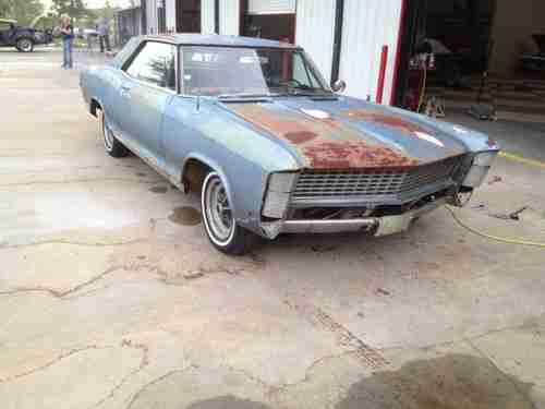 Hello and thank you for taking a look at my 1965 Buick Riviera. Ive owned this car for about 8 years now and just havent had the time to build. The car has the factory 401 nailhead and air conditioning. The last time the it ran was 8 years ago when I had first purchased it and havent tryed to start it since. The is almost all there minus the front and rear bumpers. It does have some rust including the front cabin floor boards (which they make reproduciton replacements for now), the bottom of the rear of the quarter panels, the front of the hood (VERY typical of 63-65), the tail panel lip, around the rear window, and some other small areas. All in all it would be a fantastic start to a restoration project. If you have any questions feel free to message me.