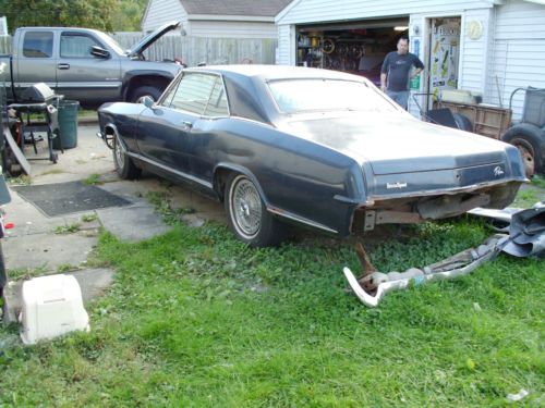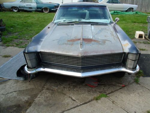 Up for auction is a 1965 Buick Riviera. It is a Numbers matching Gran sport. it comes with 85% of the parts to put it together. I started to take it apart to restore it but have lost interest. So I decided to sell it. the car has the 425 nailhead with dual quad intake both of the carbs are rebuilt. it has the bs code trans and posi as well. it has power windows power antenna (but its missing) A/C. The interior is all original. the wood has some weathering to it but for being original its doing good. the door panels themselves are in good shape. It has cloth seats the front have some wear but that's normal but they are not broke down. The back seats just need a good cleaning. The dash board is in great shape with no cracks. the package tray has seen some better days but its there. the carpet is good. It is missing the brake booster and air cleaner. For the body I started repairing the floors the passenger side and back seat areas are done. The drivers side and the inside of the trunk needs to be done but the holes are not bad. Theres a crease in the drivers quarter, both the bottoms of the fenders and a few other small spots need to be repaired you can see in the pics. The hood is fixable its not the best but definitely not the worst. Ive done the best I can to describe it but if you wanna kno anything else about the car please ask. The car is being sold as-is. $500. deposit is due at auction end. Thanks for looking I had to relist the car due to the last guy backing out after he won it....
