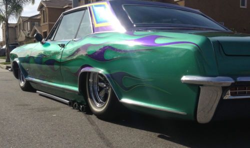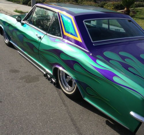 I have a nice 1965 Buick riviera GS with the 425 nailhead and variable pitch 400 trans. It runs awesome with tons of power and torque. I recently added new plugs , wires,cap and rotor. It is a a/c car and I recently went through the a/c system with a new dryer and tsv so the a/c works perfect. Also put in a new heater valve and the heat works great also. All the windows work great and have new window felts and rubber. All the glass I's good. The wing window actuators are not currently working. Need to be replaced. Never got to it. But the interior is clean stock look and completely dynamated from the carpet,doors, headliner.. Keeps it nice and quiet inside.carpet and headliner are new also..the car has new tires,shocks,track bar bushings , strut rod bushings,balljoints(need to be installed but will have one before end of sale) car has live lake pipes ran through a glass pack so it sounds good. The car is a sweet ride and gets compliments everywhere. The paint is like a mirror and has 7 different candy colors and approximate 10 coat of clear..it is nice. 12k paint job. All the bumpers are re chromed and stainless is in great shape. Clamshell headlights have been rebuilt and work great. All the lights and interior lights work as well. The car is currently on hydraulics with 2 pumps and 6 batteries in the trunk. Car can be converted over to airride for the right price. Car is rolling on 15" supreames with new tires 215/75/r15 radials. Fun car just ready to build another ride.
