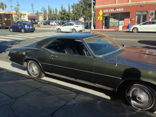 1968 Buick Riviera GS package coupe with the big block 430ci engine!This is a true desert California Black Plate car. No rust.Previous owner said engine was rebuilt 3,000 miles ago. Drives well, no odd engine noises. Complete interior and trim. Has 3 huge amps in the trunk with a CD changer and an alarm. Here's your chance to have an unmolested muscle luxury car. Make it your own. I encourage anyone in Southern California to come check it out in person and take a test drive. Low reserve. THE GOOD Dry California Black Plate car: no rust. Runs well. Drive it while you work on it. No cooling issues. Not missing any parts. Comes with an extra dash and some odds and ends. Original paint, original everything including stereo. (Modern stereo is hidden in glove box) Top of dash looks brand new still: no cracks at all. Good carpet. Dual exhaust. Big Block 430ci! Auto trans is smooth. (I believe it's a TH-400) GS option came with bucket seats and center console. THE BAD Paint is fading. Vinyl interior is crispy and cracking. Back seat vinyl has split at the top, check the photo for the tape holding it together. Brakes work but are soft. Clock in dash is loose. AC is all there but not hooked up. Turn signal lever is loose. Passenger window motor needs help when rolling up. (Mechanic told me it's probably fine with some new grease.) Ask any questions! Sold as-is, where-is in Los Angeles, Venice, CA |