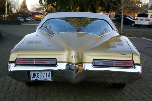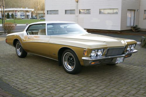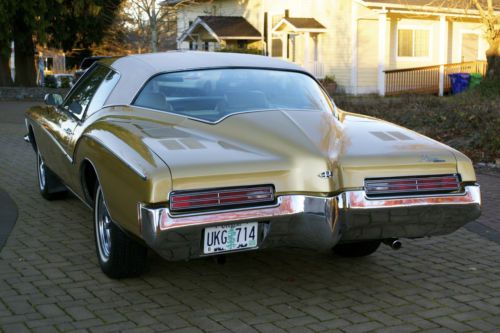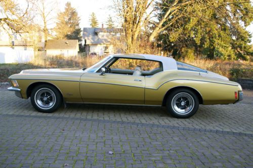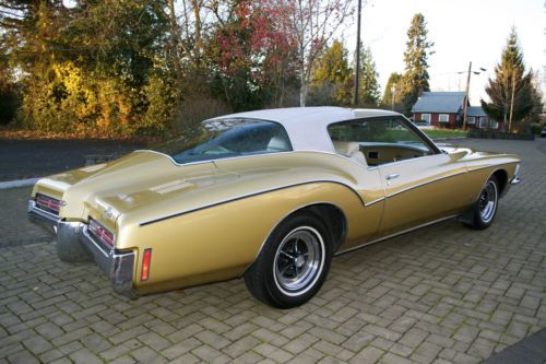 1971 Third Generation (1971-1973) "Boat Tail" Riviera 1971 was the first model year of the dramatically redesigned third generation Riviera model. The "Boat Tail" design was inspired by the 1963 Corvette Sting Ray split window coupe. The 1971 Riviera model featured a unique louvered trunk design ("Full-Flo" ventilation system) that was not available on later models. The 455 CID V8 Engine was rated at 335 HP while the car has impressive performance despite it's size and weight. Great driving car for long distance car show enthusiasts. This is a fantastic example of a true survivor car. I purchased this car 2 years ago from it's original owner.Replace the heater core & carpet with a kit,flushed all fluids and replace all filters,transmission fluid and filter,spark plugs,wires,rotor,cap,air filter. The interior is amazingly clean and it still has the original factory installed 8-track radio.Everything works all power windows,horn,key buzzer,int courtesy lights,trunk light, No cracks on the dash or rips on the headliner.very nice vynol top.The car is stock and runs and drives like a new car. The engine is the factory 315hp 455 ci V8. 43,825 original miles I was told. It has a small exhaust leak coming from the right manifold, maybe a doughnut or gasket. The AC system worked a few years ago but needs to be charged now. The interior is a 9.5 out of 10 and the factory paint is a 7 in my opinion.Drivers bottom seat has a split in the seam,rear bumper on passenger side has a little blemish/dent,In front of passenger rear tire theres some bobbling at the bottom. It is very solid and rust free and I showed the car at local shows last summer,but the paint is not perfect. Glass, chrome and rubber are very nice and the pictures don't lie. |