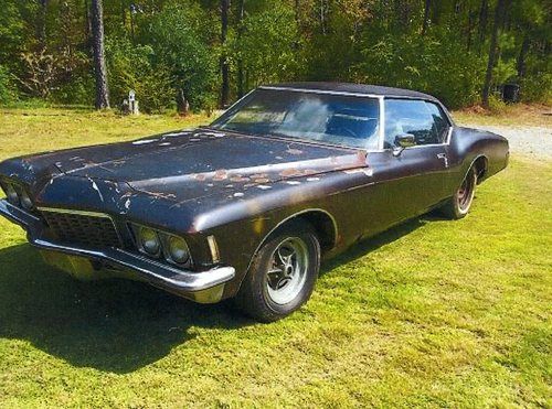 1972 BUICK RIVIERA /BOAT/TAIL /PROJECT CAR.....THIS RIV IS UNUSUAL IN THAT IT IS EQUIPPED WITH THE FACTORY CENTER CONSOLE TRANS SHIFTER ALONG WITH TRUE BUCKET SEATS ...MOST OF THEM HAD THE SHIFTER ON THE STEERING COLUM....SO THIS LOOKS AND FEELS MORE LIKE A POWERFUL SPORTS CAR...COMES WITH THE 455 CU/250 H/P V8,4 BARREL CARB, 400 AUTO TRANS,P/S,P/B,P/W,P/D/L,A/C,CRUISE CONTROL ALONG WITH THE BUICK FACTORY SLOTTED CHROME WHEELS,HAVE ALL 4 OF THEM..EXTERIOR COLOR BRN / INTERIOR WHITE... THE RIV IS NOT RUNNING BUT ENGINE IS FREE AND CAR IS COMPLETE....SOLD WITH A BILL OF SALE AS IN 1972 AND PRIOR YEARS GA. WAS NOT A TITLE STATE...NO KEYS ...VIN ON DASH HAS SOME RUST SO ALL NOS# ARE NOT LEGIBLE BUT VIN NO# IS LOCATED ON OTHER PARTS OF THE CAR..DUE TO THE OPTIONS AMD OVERALL CONDITION THIS BOAT TAIL WOULD BE A VALUABLE ONE TO RESTORE...CAR SHOULD BE TOWED TO IT'S NEW HOME...SOLD AS IS WHERE IS WITH NO WARRANTIES, GUARANTEES OR REFUNDS.....CAR IS LOCATED AT A PAID GATED STORAGE FACILITY OUTSIDE ,IN COLUMBUS ,GA. .SOME PICS TAKEN BEFORE CAR WAS MOVED ...PICK UP DAYS AND TIMES WILL HAVE TO BE ARRANGED WITH THE STORAGE FACILITY....DON'T LET THIS RARE BOAT TAIL PASS YOU BY ,IT'S REASONABLY PRICED !!!!!