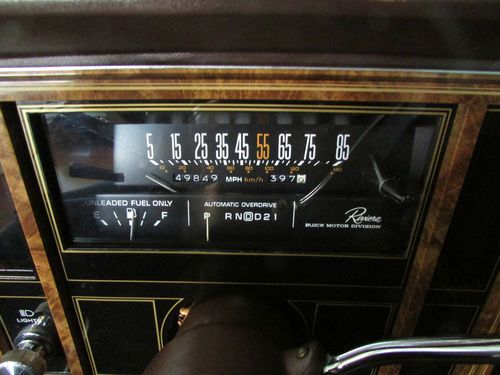 up for auction is a 1983 buick riveria coupe,with49,925 original miles,runs & drive fine.defects; a/c does not work,some cracks in bumper fillers (the space between bumper and body) one crack in dashboard ,clearcoat fading about 1 1/2" above windshield.4 new Uniroyal tiger paw tires ,wire wheels NO RUST BEAUTIFUL INSIDE AND OUT. DO NOT BID UNLESS YOU HAVE THE FUNDS TO PAY FOR IT. GOOD LUCK ON A FINE CAR.