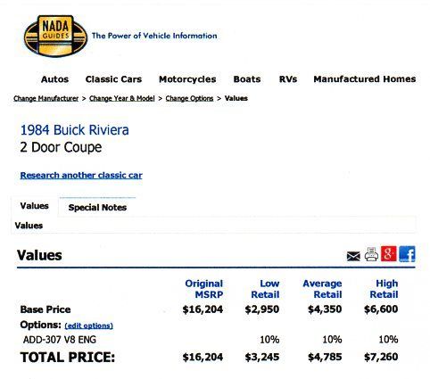 SELLING MY WIFE'S RIVIERA BECAUSE WE BOUGHT A NEW CAR AND NOW HAVE 4 VEHICLES IN THE DRIVEWAY. LICENSED AND INSPECTED. IT'S A DAILY DRIVER. WE BOUGHT IT IN 2005 WITH 110,000. THE SPEEDOMETER STOPPED WORKING AT 136,339. WE REPLACED THE HEADLINER IN 2005. REPLACED THE ENGINE IN 2007. HAD A NEW VINYL TOP PUT ON IN 2008. ALSO REPLACED THE BUMPER FILLERS AROUND THAT TIME. IT NEEDS A PAINT JOB AND AN AIR CONDITIONER CONTROL PANEL. STARTS AND RUNS WELL, IN FAIR CONDITION. (#4). BLUE BOOK QUOTES ARE FOR THE 64801 ZIP CODE. JOPLIN MO. COMES WITH HAYNES MANUAL.