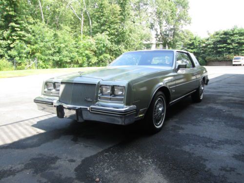 1985 Buick Riviera Coupe. Finished in Sage Green with Dark Green Interior and a White vinyl 1/2 Top. ONE Previous Female owner from new with 66,741 ACTUAL MILES NO RUST and mostly original paint. Runs and drives as it did when new to include cold climate control. High matched WSW Radials with original simulated wire wheel covers. Collector liquidating for estate planning purposes. Questions: 908 872 7356 |