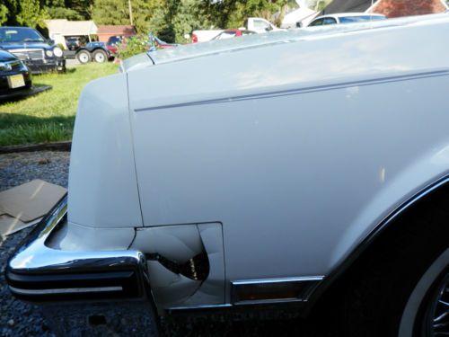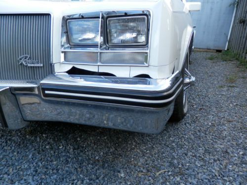 Hi your are bidding on a 1985 Buick Riviera in great condition the car is white the interior is blue leather it has 89,900 miles never smoked in this car car has no dents or body damage or interior damage. 1 wheel is damaged it is off the car and should be fixable it has a steel wheel with a hub cap as a replacement the car has white wall tires in good condition. bumper fillers need to be replaced but are included brand new you just need to paint them they cost over 400.00 and will be included with the car at no cost. Also included is a brand new starter in the box the car starts and runs great power seats power windows power door locks power mirrors chrome on car is in great condition this car is going to be a classic in a few years worth much more than the reserve price on the car which is very low. The car can be seen and driven if your in New Jersey if you have any question give me a call 908-436-7284 a 500.00 deposit must be made by Paypal within 3 days and car must be paid in full and picked up within 7 days of auction end or car will be relisted. if you have less than 10 feedbacks please contact me or your bid will be removed good luck and happy bidding