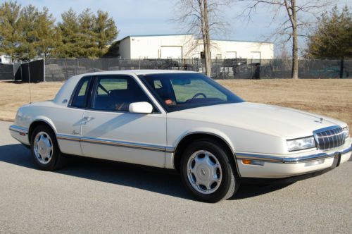 Beautiful 1993 Riviera Coupe. Last year of small body car and best looking. Pearl white paint is near perfect as is leather interior. Always garaged. Everything works. Best you will find and only 34,200 miles. Very rare Grand Touring package with Reatta type 16" wheels and no vinyl top. Drive or show. Never any paint work done. Bought car in Kentucky in 2007 with 20,400 miles. Drive it home. Call Rick at 314-486-6367 with questions.