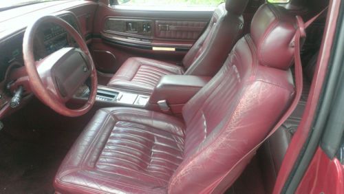 It's time to say goodbye to the Buick Riviera 1990 triple red, one owner, always garaged with 53000 original miles. Original paint is beautiful (except for one scratch) and chrome is perfect. Interior leather shows minimal wear and is as comfy as you would expect from a Riviera. Dash has no cracks The interior headliner needs help as the glue has given up all hold (I secured with hat pins!) My Dad purchased the car brand new (I still have the window sticker) and he made sure it got regular oil changes and service. Service records are available. I would like to see her get a good home!