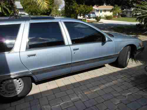 I have owner 6 of these Buick Roadmasters . I bought my first one in 2006. This wagon is my daily driver. I looked long and hard for a blue on blue Leather Wood Delete. I bought this car in Nov of 2009 with 93,000 mi. It spent most of its life in Virginia and belonged to a Rexall pharmacist. So it was owned by men over 60 who did not smoke and no kids. And has been maintained by GM Master Mechanics. I would drive this anywhere cross country tomorrow. The pictures tell an honest story. It has the factory V92 trailer tow package. I put the hitch on. It never had a hitch before. I do not slick cars up for ebay pics, only for the buyer to travel far and be disappointed. I have had that done to me and it is a bad thing. The rear windows have the usual gm break. (they need help to close). I disconnected the courtesy lights at the rear view mirror. (they would not stay off) The horn does not work. It has a nice after market radio prof. installed. The tires were in July of 2009. They are good for 10 thou more miles. Pro window tint. I have most of the paper work on the car. It is a great inter-state cruiser. In my opinion this wagon is rust free. Car is for sale locally, if it sells I will take down the auction. Ask a question and I will get more pics to you, include your phone # and I will call back or text.. Thanks Island Tom