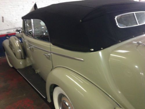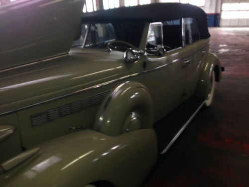 1937 Buick Roadmaster Model 80C 4 door convertible One of the most beautiful Buicks ever produced. This is classic art deco design at its best. This Buick appears to have a 20+ year old restoration that is showing age. Condition of body and mechanicals is excellent. The engine starts easy, every time. It does not leak or smoke and drives cool (even in slow moving parades). Neither transmission or rear end leak or make noises. Never had cause to examine brakes. The Buick stops without shudder, noise and in straight line. All gauges work, hover I question accuracy of gas sending unit (20+ years old?). I did not have to drain tank when I received this car 2 years ago. Gas filter was clean, I replaced it and it remains clean. There is no rust or physical damage to this car. It has been stored inside while I have owned it, and appears to have been stored inside before that. Chrome and stainless are in very good condition. The convertible top appears new. Only deficiency seems to be age of paint and interior (which may be original). This car is for sale locally. Any questions feel free to call Gregg @ 509/443-5783 Oh, I apologize for the quality of the photos. It was an overcast day and the window back lighting overwhelmed my camera. |