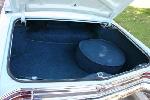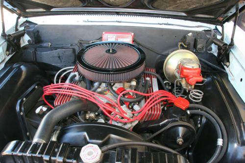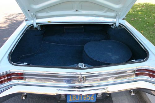 The original car had power steering, but non-power drum brakes, a Wildcat 350 engine (300 ci V8 with 352 ft-lb torque @ 3K RPM) with the "power pack" option (4-bl carb & twin exhaust). The re-build included a complete disassemble, clean & paint of the engine compartment & undercarriage, installation of a Mustang II front-end with power steering and disc brakes, tear down and rebuilt of the engine with slightly bored cylinders & new larger pistons, a "mild" cam, & all bearings, pumps, & the like. The 4-bl carb was replaced with a Holly injector throttle body & an electronic ignition & ECU were installed. The exhaust system was replaced and includes glass-pack mufflers so there's a little growl. The car runs very well, but sits for months between periods of exercise and now has some oil & ATF loss, so it is garaged with a drip pan that collects about 1/2 - 1 cup a year of the 2 lubes between outings. There are a few worn spots, nicks, chips, tears, & fades from enjoyable use over the past years, but I believe it to be in good to excellent condition, have no fear of long drives, and must admit that I enjoy that it turns heads on every outing. |