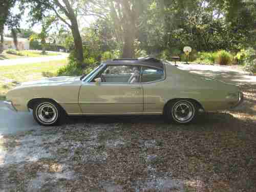 UP FOR BIDS IS PROBABLY THE NICEST ORIGINAL CONDITION 1972 BUICK SKYLARK SUNCOUPE IN EXISTENCE. FOR THOSE THAT DON'T KNOW THE SUNCOUPE IS A VERY RARE CAR WITH LESS THAN 3000 PRODUCED AND ITS CHEVY, PONTIAC AND OLDS COUNTERPARTS DID NOT EVEN OFFER THIS PACKAGE. IT IS A LIFETIME FLORIDA CAR WITH NO RUST AND STILL SPORTING ITS FACTORY ORIGINAL SANDALWOOD (BEIGE) PAINT AND WHITE VINYL INTERIOR, BOTH IN GOOD CONDITION. IT PRESENTLY SHOWS 79,845 MILES AND COMES WITH A CLEAR FLORIDA "ACTUAL MILEAGE" TITLE, AND THERE IS NO REASON TO BELIEVE THIS IS INCORRECT. THE BROWN VINYL TOP AND SUNCOUPE SLIDING TOP HAVE BEEN REPLACED DUE TO SHRINKAGE FROM THE FLORIDA SUN. THERE WAS ABSOLUTELY NO RUST UNDER THE ORIGINAL VINYL TOP, ALMOST UNHEARD OF FOR THESE GM A-BODY CARS. THE RENOWNED MIKES AUTO TRIM HERE IN SARASOTA DID THE TOP REPLACEMENT. THE CAR RUNS BEAUTIFULLY AND SHIFTS SMOOTHLY. THERE IS A SLIGHT TRANSMISSION SEAL LEAK WHEN THE CAR SITS FOR A LONG TIME, BUT SEALS RIGHT UP UPON USE OF THE CAR. I DID ADD ELECTRONIC IGNITION A FEW YEARS AGO AND HAVE BEEN PLEASED WITH THE ADDED PERFORMANCE.