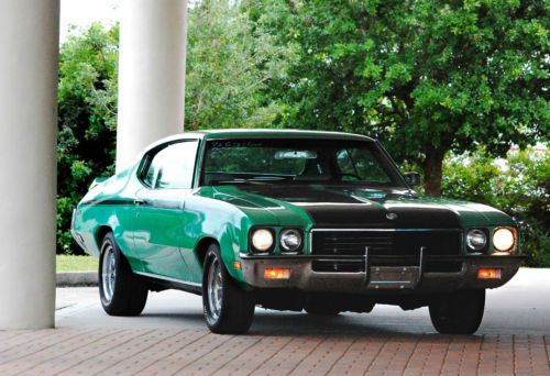 1972 Buick Skylark GSX Clone "Green Machine" "72 was the last year for the Pollution Control free engine, really the end of the muscle car era, and this Skylark embodies everything great about them. Light and fast with tight steering and that "riding on rails' feeling that you never got in the "60's cars. This beautiful car comes with: