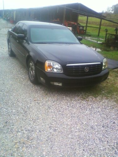 2002 Cadillac Deville DTS, black on black leather. 17" chromed aluminum factory option wheels, has every option from Cadillac except for the sunroof, interior is in excellent condition for the year of car, non smoker, car runs and drives, rides excellent but has a blown head gasket, no water in the oil or oil in the coolant system but can smell antifreeze and see white smoke from the tailpipe, car will start and run to pull onto trailer but cannot take it for a test drive, motor overheats in about 5 to 10 minutes, car is sold AS IS |