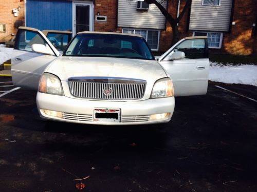 I have a 2002 Cadillac Deville DTS FULLY LOADED with ONLY 69,000 MILES!! Has a Pearl White exterior with Gold Accent, Tan Leather interior, and a Tan Carriage Roof with Boarder Simulated Snaps and Custom Gold Cadillac Emblems!