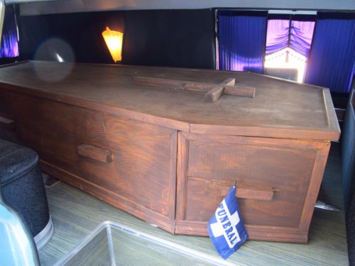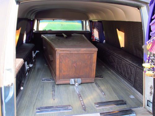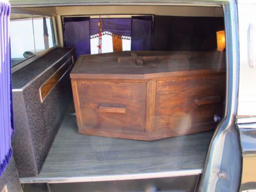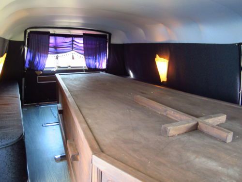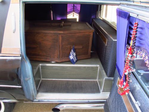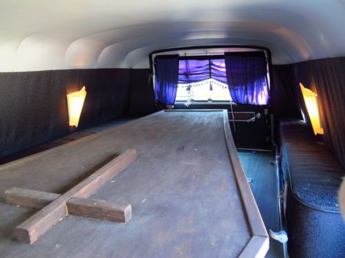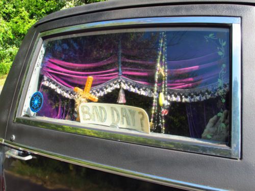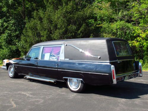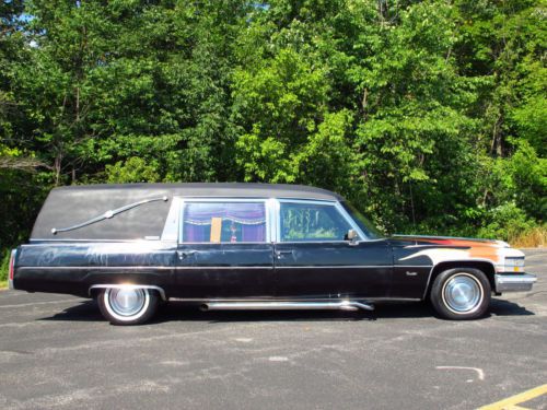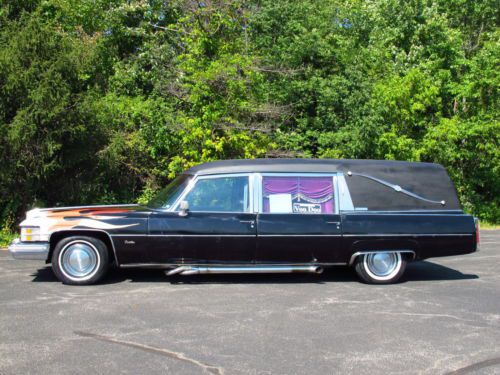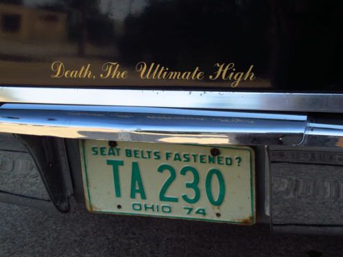 Questions, please email or call/text John at 440-339-4341. This is my 1974 Cadillac DeVille hearse built by Miller-Meteor as a 3-Way Traditional Landau hearse on the Cadillac heavy-duty Commercial Chassis. This is a flames-and-sidepipes classic hearse- if you don't like attention this is not the car for you. This is a fun car, perfect for upcoming Halloween or driving anywhere you don't mind being conspicuous. This hearse started its service in 1974 as a funeral car for the McGowan-Exun funeral home in Valdosta, GA. It remained in service there until 1984 when it was sold to the Putnam Funeral home in Pikeville, TN. It remained in service there until it was sold to a car collector here in Ohio. This hearse has been serviced and maintained since new, and it remains in excellent mechanical condition. I have documentation going all the way back to new for this car. I have the original Cadillac Commercial Chassis warranty paperwork, plus the Miller-Meteor owner service book dated October 1974. I have copies of the title when the car was sold in 1984 plus the original Cadillac owners manual and service schedule. I even have registrations going back 30 years and a funeral home postcard of the car! I also have a 128-page book titled Classic American Funeral Vehicles which lists this car along with a full history of funeral vehicles from 1900 to 1980. It's an interesting read. The Cadillac Commercial Chassis is an ultra heavy-duty platform for professional vehicles. The engine was exempt from the emissions restrictions of the time, so it is a high-output 10.25:1 compression 472 V8. This engine makes substantially more power than the passenger car engines of the same time. The previous owner, a car collector, used this hearse extensively for shows, traveling and for fun. This car has recently made trips as far as North Carolina and Southern Ohio. It is in excellent mechanical condition and it is totally reliable and dependable. I would trust this car to make a long drive anywhere. This hearse has been customized from it's original appearance, obviously. If you are a shy person, this is probably not the car for you. This car attracts attention everywhere you go! People love this car! It has been repainted black from it's original metallic blue-green color. Flames were painted on the hood and functional side exhaust pipes were added. A mock-up wooden coffin is in the rear area, and decorations, signs and curtains are in the windows. This car runs and drives great. The engine starts up perfectly and it is smooth and powerful. The engine does not smoke or hesitate. The transmission shifts well. The side-pipes are loud, but not too loud- it is appropriate to the appearance of the car. The brakes and steering are good and the suspension gives a great, controlled ride. This Cadillac runs and drives like it should- it is a very reliable, dependable car that has always been serviced and kept up. The car is equipped with air conditioning, but it doesn't currently blow cold. The previous owner indicated it was working up until a few years ago, but hasn't been looked into since. This car was serviced as recently as two weeks ago, when a new water pump was installed. As I mentioned earlier, I see no reason why this car could not make a long drive anywhere. The interior is original and is in good condition. The rear casket area is all original and in superb condition. It is clean and in very good shape. All of the doors open and close properly. The front passenger area is in good condition as well. The seat upholstery is very good. The carpets show some wear and tear from age but are still decent. The exterior of the car is custom, obviously. It isn't a show-quality exterior- but it certainly catches attention. The body is good and the underside is totally solid and clean. There is no significant exterior body rust. The paint isn't perfect, and there are a few bubbles here and there, but it looks presentable in a flames-and-sidepipes-hearse kind of way. I can imagine this car used as advertising for a haunted house or ghost walk, a unique cargo vehicle or just an interesting conversation-piece classic car. This is not a perfect 100-point show car, nor a concours trailer queen. This is an attention-getting, ratrod-style flames-and-sidepipes hearse that is reliable and fun to drive. You can fly in to Cleveland (CLE) and drive this car home. This car is currently registered and insured in Ohio. The buyer will be able to purchase a 30-day temporary tag at the OH License Bureau for driving the vehicle home. You can also have the car shipped- please call Angels Moving Autos at 530-245-0481 for a shipping quote. This car is kept in my garage in Willoughby, OH. |