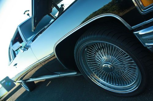 1975 Cadillac Coupe DeVille Lowrider. Black w/ red leather. 20" Spoke wheels, stereo. All receipts from 2003 on for mechanical work. 75xxx original miles. 10 switch air suspension with 2-5 gallon chrome tanks and compressors. Pancake, see saw, left side, right side, all 4 tires, and front and back switches. No leaks in the air ride. The car will hold air all the way up for 2-3 days with no noticeable drop. Red neon ground effect lighting and full stereo (factory speakers and unit replaced) with subs.