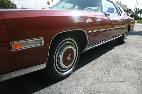 We are selling this all original 1978 Eldo from our private collection. The miles on this car are 32,000 and is stated as such on the title by the Florida DMV. Although we are not the original owners of the car, it has been in our collection for some time. We have taken the car on road trips, car shows and events. The chrome is in impeccable condition, all the rubber seals around the windows are original and show no signs of cracking or deterioration. The paint is 100 % original along with the urethane bumper extensions which are as pliable (soft) as they day they came out of the factory. The car was stored by the original owner in a climate controlled garage in Wyoming. The paint shines like a mirror and is also original. The interior is 100% perfect, the leather seats are original and soft, no cracks in the dashboard or door panels, carpets are perfect. Look closely at the photos I'm providing. The interior, motor, trunk have NEVER been professionally detailed....nor do they need to be. The body has been polished by hand and to the best of my knowledge, has never been machine buffed. Yet, it shines like a mirror. The car does have a few minor stone chips and a couple extremely minor, barely noticeable dings. The car truly speaks for itself. It is extremely hard to find a true survivor in this kind of condition. The car is available to be seen by appointment. I reserve the right to end the auction early. Bidders must call before bidding with less than 5 positive feedback scores. $ 500. deposit is required within 48 hours. Balance due within 7 days, cash or wire transfer.
