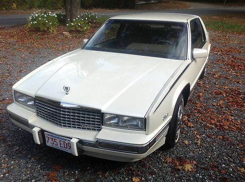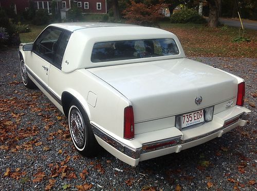You are looking at a beautifulWhite Diamond Cadillac Eldorado Biarritz coupe with shale colored leather interior. This beauty spent most of its life in California and was recently purchased from a Palm Springs estate. This car recently had new brake pads and drives and rides perfectly...the height of Cadillac elegance! Everything operates as it should....the tires look practically new. The car needs NOTHING! The paint and leather interior are in exceptional condition. It is being sold as-is,