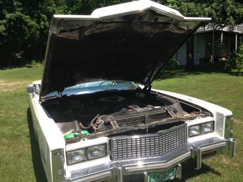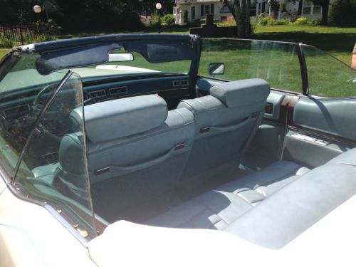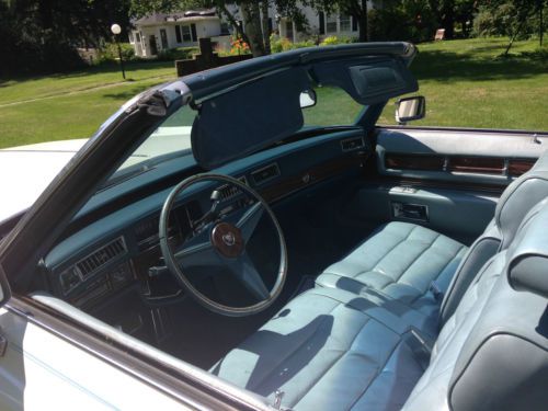 Up for auction is a used 1976 Cadillac Fleetwood Eldorado Convertible, in Cotillion White with Antique Light Blue interior. This car has stayed with the original owner since it was purchased in 1976 from Val Preda Olds-Cadillac in South Burlington, Vermont. It has been kept in a heated garage and never driven during winter. All original mileage (58k+) and factory-installed standard equipment; the only modifications to this car are an exterior re-paint (color-matched to original Cotillion White) and a replacement power convertible top motor. Everything runs well - including the air conditioning. The car has been driven sparingly with care, and has a clean title/history. It has not been recently detailed - but all interior upholstery, vinyl and carpet is in good shape. Please contact seller if you would like to exchange phone numbers or see additional pictures - more will be posted shortly. Read on for detailed specifications and terms of sale, payment and shipping. Thank you for looking and enjoy the auction! Identification/Condition