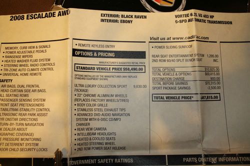2007 cadillac escalade base sport utility 4-door 6.2l(US $32,900.00)