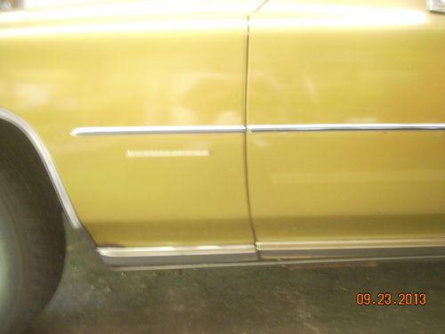 Very nice car. Needs few things to make it real nice. The body has some rust near the vinyl roof/rear fender area, none at the quarter panels, nor rocker panels, trunk or floorboards. Easy fix. Tires are very good. Car has the 500 engine, and runs perfect. Interior is 98% perfect. Carpet is perfect. Seats show no wear! Chrome bumpers are near perfect. Other brightwork is excellent. Car needs the 5 plastic pieces called 'filler panels' between rear bumper and body. Car is generally in excellent condition.