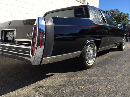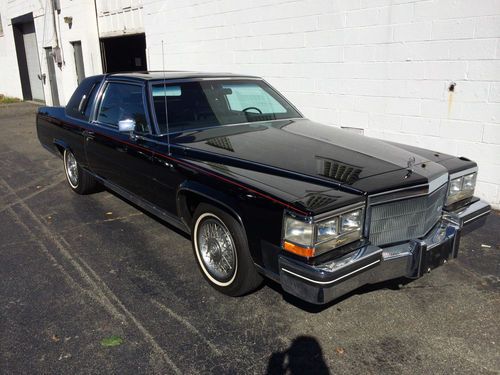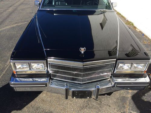 Up for sale is a very rare find a 1984 Cadillac Fleetwood Brougham Coupe,Black On Black with sunroof.Don't see to many Brougham Coupes around as each year they were produced they were in pretty limited quantity compared to their 4 door sedan counterparts,nonetheless in a desirable color combo as black with black leather.It took quite awhile to find this car as ive seen less than a handful in this color combo over the past 5 years ive looked for one.Those of you looking at this car will know what it is so i wont go into full detail,i will just get down to description and let photo's be the judge along with that.Overall car is in very good shape body wise and mechanically runs great with many new parts installed.Body is very straight and shows no prior evidence to best of my knowledge of any paintwork and car maintains its original laquer paint and shines up extremely well.As with laquer paint on a car of this age,there is some checking on the hood,and roof of the car,it does not detract from the overall great appearance of the car,and you can choose either to have it resprayed or keep it original as i like to have and have kept my previous Cadillacs that i have owned.Driver side door also shows some checking on middle part of door not its entirety.Otherwise rest of cars shines and shows still a deep luster that only this type of paint can for its age.Interior of the car is also overall in great shape,the black leather seats show no signs of fading and rear looks almost untouched,carpet is full and plush and its original floor mats also present very well as a testament to its great care and low miles.Headliner will need replacement as its sagging somewhat in the rear of the car,and has been removed by the shade that covers the sunroof.Mechanically the car has recent replacement of water and fuel pumps,hot water control valve for the climate contra system,a new power steering hose,and new rear springs for the rear suspension.Ac turns on but does not blow very cold,and power antenna will need to be replaced(not an expensive fix) as its recently just remains in the upright position.Bumper fillers are original and a common problem with these cars,they are faded and all are in fine shape except driver,s side rear is cracked.Please take a look at the photo's and ask any questions.I welcome an inspection for anyone interested car is currently in nj have clear colorado title along with mileage verification notarized by previous owner.Car is sold as-is where is with no warranties expressed or implied.Buyer to arrange for shipping if out of state or can drive it home.Deposit of $500 DUE within 48 hours of sale,with balance due by certified funds or cash before car is released.I have sold 2 Cadillac's and a sunbeam over the years so good luck and enjoy.