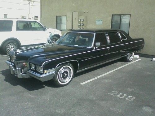 All Black outside and inside. 72 Cadillac Fleetwood Limousine for sell. Crush velvet interior, Black Candy Liquorice Paint. 1 owner since being redid. For more information call Taju (510) 692-8825
