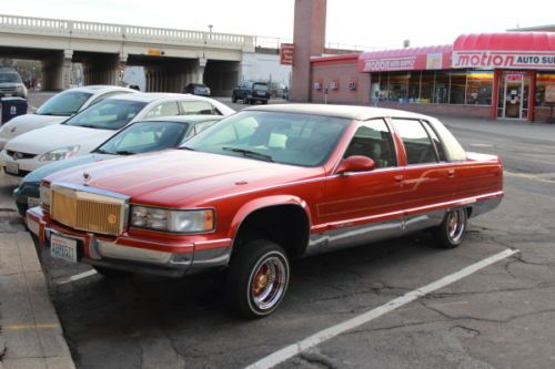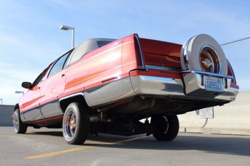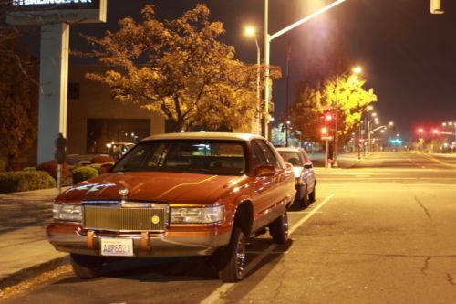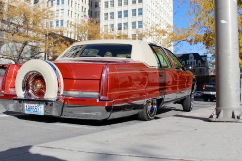 93 Cadillac Fleetwood lowrider. Been in lowrider mag and won awards. Built by Locos Customs out of Spokane Washington. 3 pro hopper pumps, 10 custom painted batteries, 4 switches. Has a decent system. 3 TV video monitors, custom paint matched playstation, 12" JL audio subs, and rockford fosgate amplifier. Candy paint inside and out with 24k gold metal flake and classic pin striping. Car is clean and ready to roll. Only blemish is on the hood where the hydraulic cylinder made a small fixable dent under the hood. The car is beautiful and clean. Odometer reads 195,000 though there was a chevy 350 engine swap when the car was rebuilt. Unsure of the engine mileage. Does not leak any motor or transmission oil. Its clean and ready to roll.