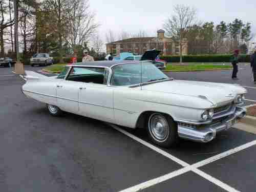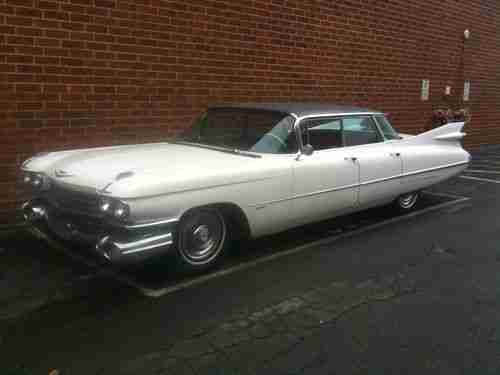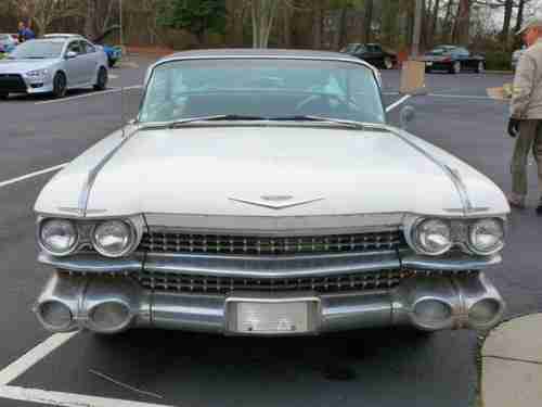 Sweet 59 Cadillac flattop - original clean condition - drive anywhere...not a rust bucket - floors and trunk solid, rockers and doors solid..just some crust coming through just needs cleaned up. Chrome is in really good shape, original interior has small tear on drivers area. Glass is good, brand new dash cover comes with it. transmission was upgraded as well as the brakes. 3 inch dual exhaust - new tires, new headliner, all electrical works even the radio. Call Frank 404-247-0881 - Pictures you are looking at was when I first got it...so its been cleaned up more. chrome shines great, door panels cleaned up super nice too. vintage floor mats