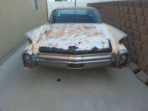 1960 custom 2 door hardtop cadillac. This car is in great shape rust free car. I pulled the carpet out to show the floors in this car. They are in amazing shape. The car has no motor in it but has a trans in it. The bottom of the motor is in it but thats it. The car has no seats in it. I used them in my 59 caddy so what you see is what i have. If you would like to know more just let me know. I will get back ASAP. The hood is with it it is just off right now.