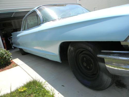 Description: You are bidding on a '61 Cadillac Coupe Deville 2 Door Hardtop. CLEAR North Carolina Title in my name, on hand. This car has factory power windows, power steering, and power brakes with front disc conversion. Headlights, brake lights, and tail lights all work. The exterior is primer with some house of kolor blue paint added to give it a flat Carolina blue look. I do have a hand full of parts in the trunk including a lot of the removed chrome pieces. Things I do know the car still needs: I have over $7k invested in this car. I put a buy it now price because if I don't, people will flood my email asking a price. So there it is.... I do not recommend driving this car on busy roads or long distance until good tires are installed and the exhaust is installed. As well as the brakes getting adjusted. Bidding, Payment & Pickup: