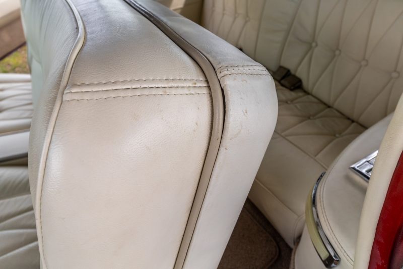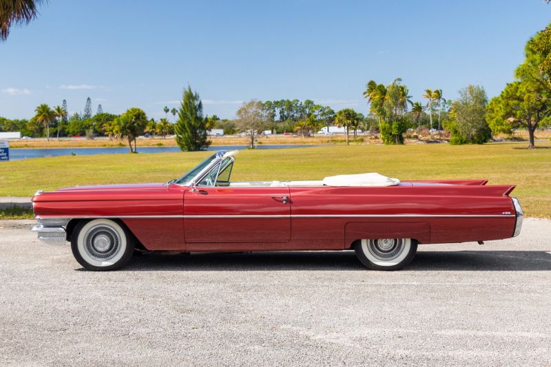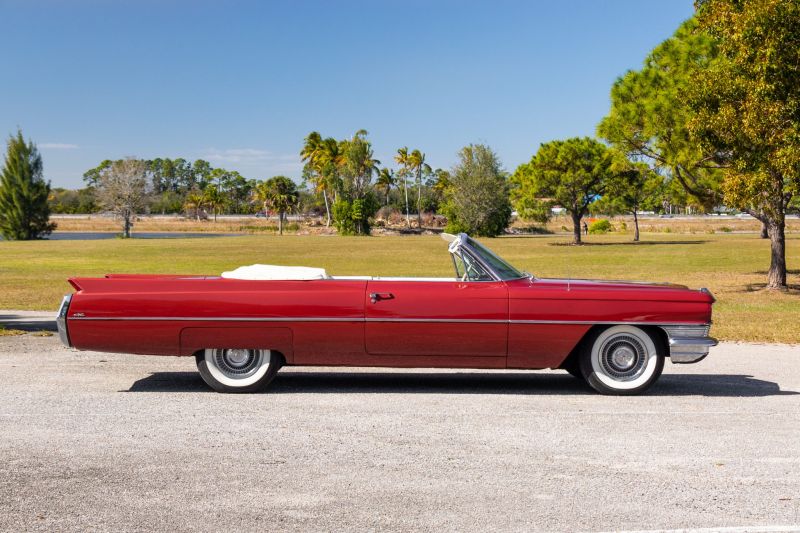 Email me at : Josh213@gmx.com This 1964 Cadillac De Ville convertible was subsequently underwent a refurbishment that included refinishing the exterior in red and reupholstering the white interior as well as replacing the wiring harness, refurbishing chrome and stainless-steel trim, and rebuilding the clock and the wiper motor. The 429ci V8 was rebuilt and is paired with a three-speed automatic transmission. Equipment includes a white convertible top, 15 wheels, air conditioning, a push-button AM FM radio, and an aftermarket JVC CD player.