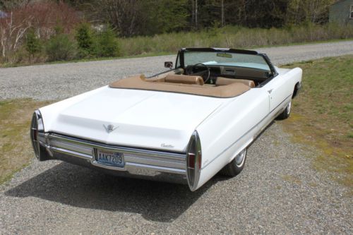 First off, I am listing this car for my father who is the 3rd owner and has owned it since the early 90's. He is available for questions and I encourage you to ask any prior to bidding. All questions need to be sent through the contact seller option. Up for auction is a 1968 Cadillac De Ville Convertible. Like I said above he is the 3rd owner of this car and the previous owner bought it in 69. This car is what we would call a "survivor w/paint" as the paint was freshened up in the 90's with minor body work performed, dings and such taken out. The car has zero rust including the original floorboards. In fact it has the original carpet and floor mats are still in it. The original leather seats are in great shape, and there is factory AM/FM radio in an uncut dash. Paint is shiny and glossy and the original chrome still glistens in the sun. The car has all of the Cadillac options you would expect with power everything and A/C. The original top was just replaced last year and a fresh set of tires installed. The convertible top boot looks like brand new and may have never even been on the car until my dad bought it. Previous owners had it stored under cover and dad has had it in a garage for the entire time he has owned it. There are only 84,050 original miles on this piece of American Classic Luxury. It has a 472cu in V-8 motor and a turbo 400 automatic transmission. A fresh battery has just been installed and the car runs and drives like a Cadillac should. Bidding will start at 10,000 and an undisclosed reserve is set at below 20K See our other auction for a nice restored 65 Pontiac Bonneville Convertible "Driver" Car is listed for sale locally and auction may end early |