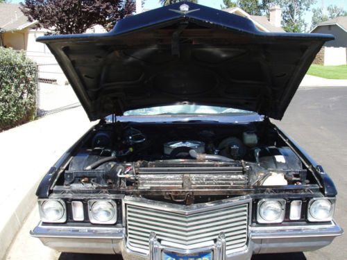 1972 coupe deville : aprox 35000 on car under 500 miles on new motor new brake system ,tires ,windshield , radiator & hoses ,plugs cap rotor ign. , starter ,fuel pump, fittings & hoses ,water pump , steering pump , battery, no rust CA car. new headliner , current June 2015 tags,paint has some scratches & some dings nothing major, ready for new vinyl top, could use repaint or run as is looks great still . I have new air condition compressor also included needs to be installed ,have all the trim & ornaments .Could still use some minor body work and front end alignment but solid driver overall .SOLD AS IS WERE IS local pick up inland empire CA. THIS IS A BINDING AGREEMENT TO PURCHASE IF YOU ARE THE WINNING BIDDER. IF YOU HAVE LESS THAN A 20 FEEDBACK, PLEASE CONTACT PRIOR TO BIDDING, AS I MAY AT MY DISCRETION CANCEL YOUR BID. CAR IS ADVERTISED LOCALLY AND IS SUBJECT TO PRIOR SALE |