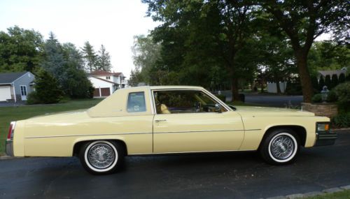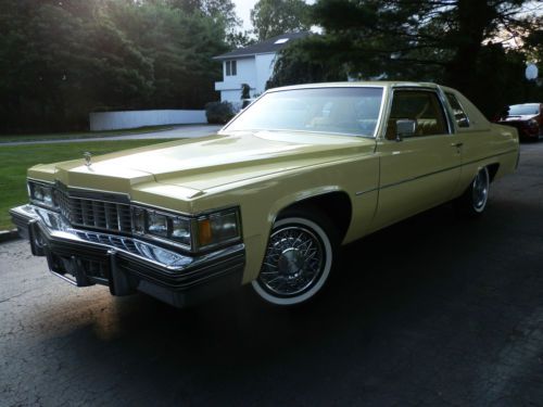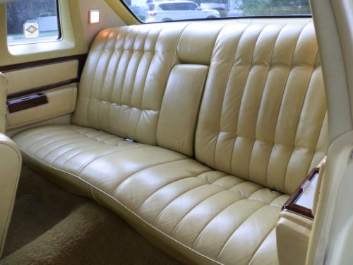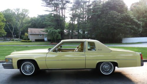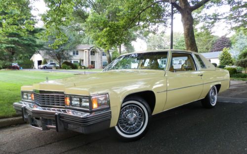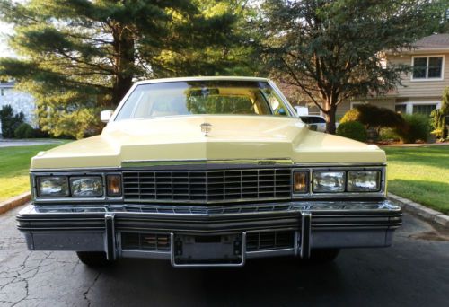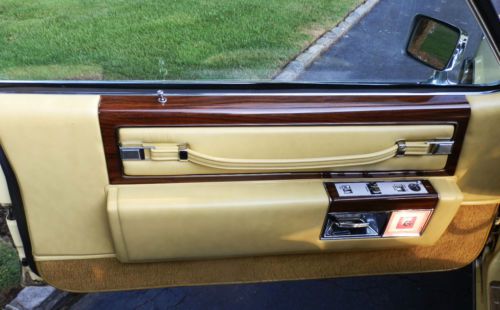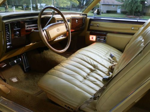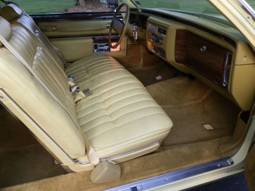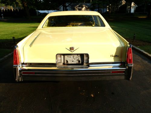 MY NEIGHBOR OWNED THIS CAR UNTIL 5 YRS AGO. I BOUGHT THE CAR FROM HIM AND I PUT ON ABOUT 750 MILES. IT JUST SITS IN A TEMPERATURE CONTROLLED GARAGE (STARTED AND DRIVEN AROUND THE BLOCK A FEW TIMES A MONTH). THIS IS A TRUE TIME CAPSULE. ALL ORIGINAL PAINT (EXCEPT THE REAR FILLERS WHICH WERE REPLACED YEARS AGO). AND 14000 MILES. THIS CAR RIDES, LOOKS, AND STILL SMELLS BRAND NEW,. THE LEATHER IS PERFECT AND LIKE BRAND NEW.VERY RARE TRIPLE YELLOW. THE PICTURES REALLY DO THIS CADDY NO JUSTICE. ALL RUBBERS, BUMPERS HEADLINER ARE LIKE NEW. I CAN GO ON AND ON BUT IT COMES DOWN TO WHO WANTS A BEAUTIFUL ORIGINAL LOW MILAGE CADDY, THEY DO NOT COME AROUND TO OFTEN IN THIS COLOR. WHAT A CAR. THE ONLY THING BESIDES THE CLOCK THAT DOES NOT WORK IS THE ANTENNA. I PLAY THE 8 TRACKS AND SOUNDS GREAT.