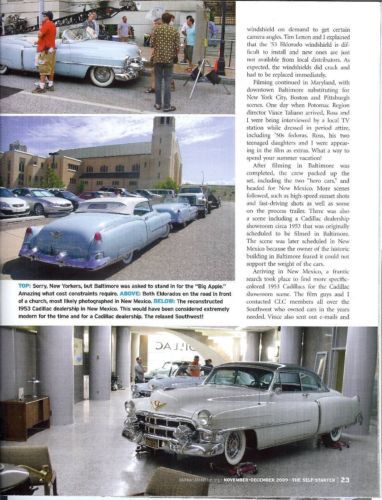 Two 1953 Cadillac Eldorado Convertibles were used for the movie. This is 1 out of the 2 used to play the main car. Two were used in order to have back-ups, as there were many scenes where the cars were required to drive very fast. The other car is currently overseas. The shooting for the movie took place over the summer of 2008 in Baltimore, MD and New Mexico. This Eldorado was redone for the movie, but has not been cleaned thoroughly since filming. The movie company had actually sprayed the car with dirt for effects, and that dirt has not been cleaned off since. For some scenes, the car was not driven but rather pulled on a trailer with Ren?e driving and filmed that way. For this, the windshield was sometimes removed. It has since been put back in. Wire wheels will be supplied with this car. Full wheel covers were used in the movie due to the wire wheels making the car appear to be moving backwards on film. Modifications done to the car for the movie include: