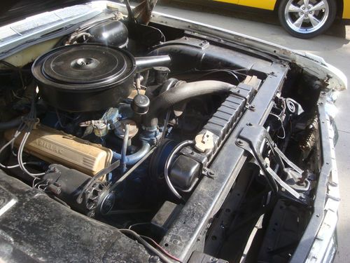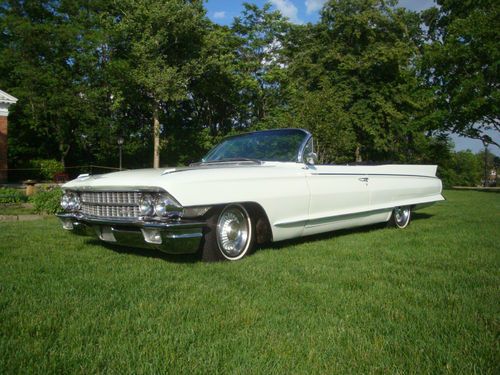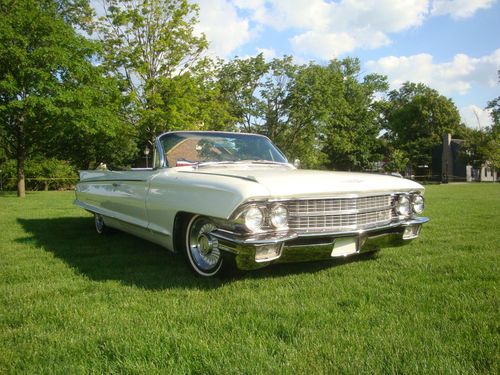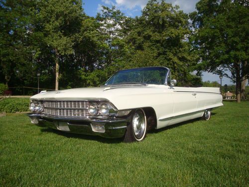 1962 Cadillac Eldorado. This Cadillac was just shown in the Greenfield Village Henry Ford Museum 2013 Motor Muster Car show and was well received. It has an original interior with an older amateur repaint. It is a nice driver that can be enjoyed now and repainted later to make a very nice car. No odd or garish colors just a very classic Cadillac combination of white exterior with a black interior. The bumpers were rechromed a few years ago and the top system was recently gone through and works nicely. The windows all work but the radio antenna is inop. Great car that needs some tlc but can be enjoyed while doing so over the years. Only 1450 made in 1962 and nada has a high retail of $43000 and a low retail of $33000 . Car is sold as is where is with no warranty expressed so feel free to come and take her for a ride.