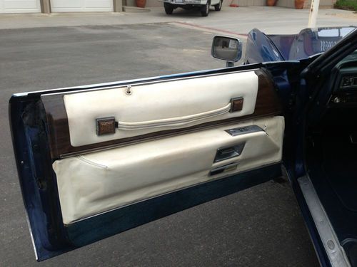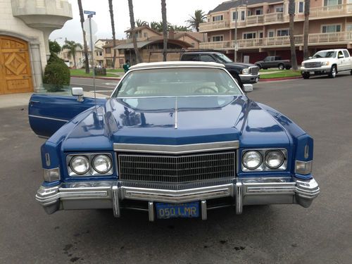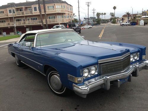 1974 CADILLAC ELDORADO CONVERTIBLE, RUNS GREAT, GARAGED, MOTOR REBUILT 3500 MILES AGO W REVEIPTS , TRANNY REBUILT 3.5K AGO W RECEIPTS, CARB RBUILT, INTERIOR TOP CARPET SEATS TIRES BRAKES ALL IN GOOD SHAPE,TOP NEEDS HELP GO UP AND DOWN, REGISTRATION PAID TIL NEXT YEAR, RUNS GREAT. 8 TRACK RADIO STIL WORK, LOTS OF RECEIPTS FOR THE TOP, INTERIOR AND ALL MECHANICAL WORK. GOOD LUCK