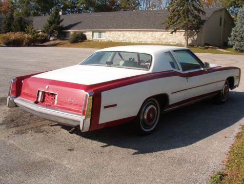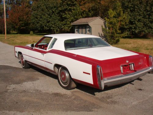 1977 Cadillac Eldorado, This is a car we traded, It runs and drives good. The body is strait, the paint is a 10 footer, it does not look bad from a distance, but it is a poor job. It had a half vinal top that was removed the rear window molding is missing. The interior is in decent shape. The car is very road worth and can be driven home. There is a low reserve so bid to own. If you have no feedback please email me before bidding.