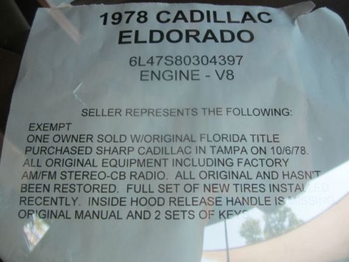 1978 Cadillac Eldorado 1 Owner Florida Car With Original Fl Title No Reserve on 2040-cars