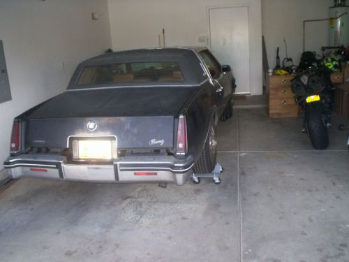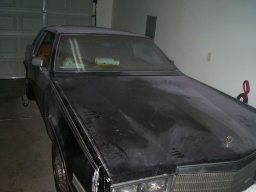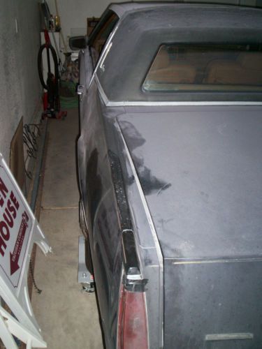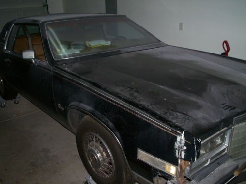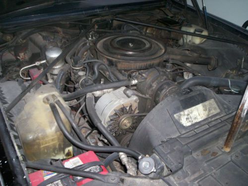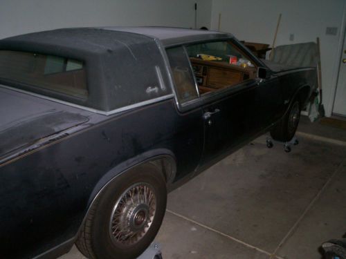 This is my 1984 Cadillac Eldorado Biarritz with Stainless Steel Top, and the dealer added sunroof. Everything is here and as original as they come. This car was last driven in the summer of 2013, late-June. Where you see her (garage), is where she's sat since. Am not sure why suddenly quit, just quietly stopped. The engine is free, a 252 cu. in. - digital fuel injected. Either it is spark or fuel or both, but believe it's towards spark. This car runs very well once she is going again. Runs "fast", she's a runner! and is quiet while doing this feat ~ passing is no problem for this girl. I've driven this Eldorado 6 years + with no problems. Get in, put key in and go~ Ever since owning her, never had a tune-up, changed wires, spark plugs, nothing other than regular maintenance of oil, filter, air filter, and tires (the tires presently are 200 miles old) installed last year before summer (radials). She's tight and road fit otherwise with (alittle rattle and humm). There are many new parts that will come with this cadillac, which haven't been installed, (alternator, starter - big buck items, new intank fuel pump, fuel filter) to mention a few, to include a complete engine gasket set (boxed), this last item - I had ordered in the first year of owning. Again, tires are new with 200 miles on them, there is a warranty but I doubt it will apply to the new owner. Front brakes are fairly new. (have new rear brake pads in trunk) There are new rear air shocks included w/fixtures to go, am naming off those items I can remember bought new for this old girl. All belts are new. She will need interior work, paint and vinyl. The vinyl, I do have (new), but it is not the cushioned vinyl as seen on car. The battery is fairly new, 1+ year old and is the correct (750 cold crank amp). She's been given basic good care all these years, just never came to having paint or interior work done. A (very good) daily driver...driven easy for most of those years. (Bought in January 2007 with 109,000 miles, since that time now are 166,139 miles registered on odometer of June 2013). There have been those occasions when had to pass,... punch and she goes~ Again - Never in those 6+ years, have I had any problems, never! If anything, she's gotten looks and asked about. (at least once a month - would I sell her) There will be those items regarding electric - such as the front driver's seat, the buttons on driver's door that make it work, that is poor or a poor connection. Power door locks, and cruise control are about the only items that bothered me if anything, but didn't take away in the ease and comfort of this old black Cadillac. The sunroof works fine, (needs plugged in) the windows work well, passenger seat works well and reclines, both outside electric mirrors, rear window defrost, most of everything electric works well for this car's age. The rubber around windows are fairly good. The seal concerning doors are fairly good. The rubber that goes between the windows and doors are dry rotted. The seal going around sunroof needs replacing, it keeps the weather out well enough, but would recommend having it replaced. (is why is unplugged) The air conditioner will need a complete vacuum and re-seal to work again, but is all there and complete. Passed emissions - in October 2012 (2 year emissions) - no problem! All lights, turn signals, and brake lights - work fine! All interior lights work fine! Glove box just needs a bulb, but does work. All lighters, except in dash, work fine! Has a Kenwood CD am/fm Stereo with remote control - Led Zeppelin's 4th - CD album is in there, once you have it back on, you'll find it (there's an added plus). Power trunk release works fine, pull-down doesn't (needs replace). Since owned, never in any collisions and far as I know when purchased in beginning, never had any. Straight looking Black Cadillac for your consideration. Owner's Manual. Shop manuals. Own a piece of Cadillac History. Please see all pictures, ask all questions. This automobile will need transport at new owner's expense, preferably by trailer where it can be secured and towed safely on the road, one that has lights and brakes, tie-downs or chains to that effect... and last, all state taxes, registration fees and title concerning your state will be at new owner's expense.