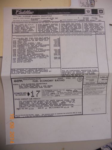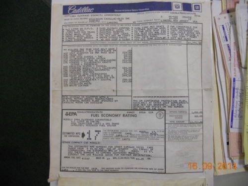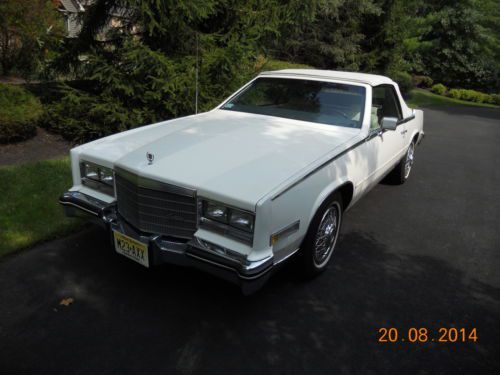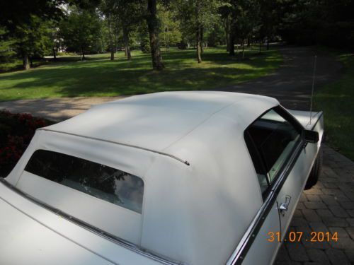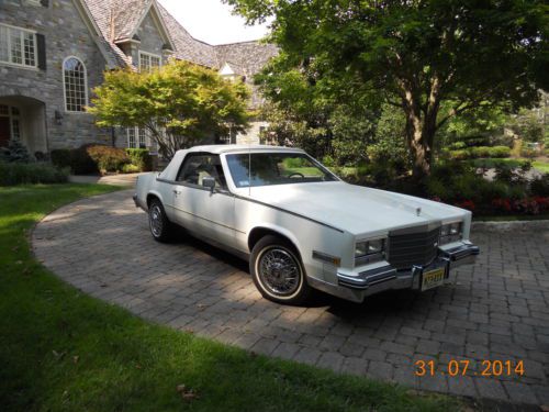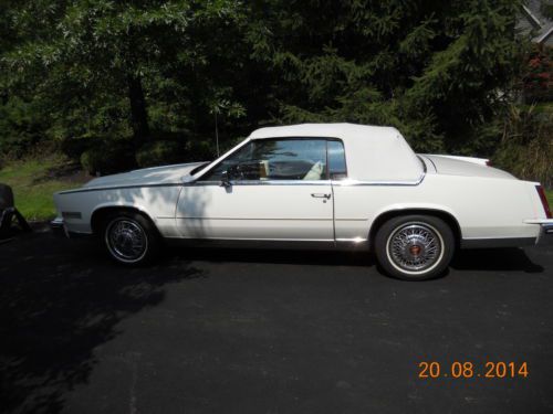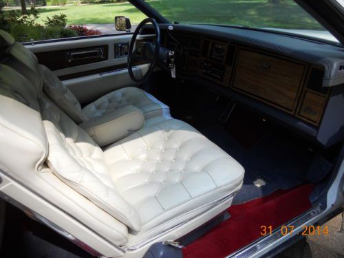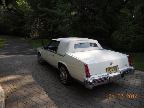you are bidding on my friends car. 1984 Cadillac Eldorado Biarritz Convertible/window sticker survivor Books *Power Brakes, *Air Conditioning *Power Windows, *Power Seats, *Power white convertible top looks nice *White with red interior. *new engine receipt at 88K miles sticker 3rd owner. *Original window sticker *Original books and service records *New Battery *AM/FM Stereo/Air Conditioning