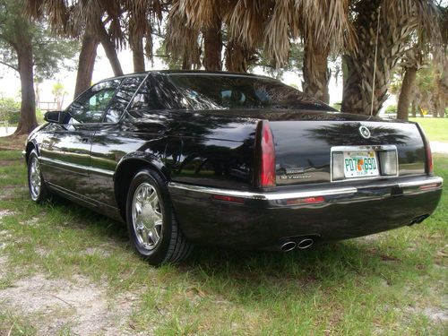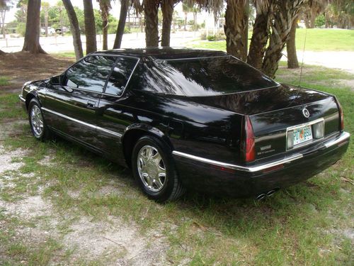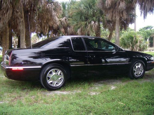THIS IS ONE OF THE FINEST 1997 ELDORADO OUT THERE!! IT IS A 97 WITH 91K MILES, IT IS A ONE OWNER WITH AN ACCIDENT FREE CAR FAX!! IT WAS PURCHASED NEW AND SERVICED AT THE DEALER SINCE NEW!! IT IS ABSOLUTELY PERFECT IN EVERY WAY!! ALL ORIGINAL PAINT,THE LEATHER IS SPOTLESS WITH NO CRACKS, NO WEAR AT ALL!! IT STILL SMELLS NEW!! IT WAS OWNED BY A LAWYER IN APOLLO BEACH WHERE IT WAS GARAGED AND NEVER ABUSED IN ANYWAY!!IT HAS THE FACTORY CHROME WHEELS WITH 4 BRAND NEW MATCHING GOODYEAR TOURING TIRES!!,FACTORY GLASS MOON ROOF,POWER WINDOWS S EATS STEREO WITH 6 CHANGER CD!! ORIGINAL SPARE STILL IN THE TRUNK!! THIS HAS GOT TO BE THE FINEST EXAMPLE OF A LOW MILEAGE FLORIDA OWNED ELDORADO!!! BLACK ON BLACK!! VERY RARE COLOR COMBO!! FOR QUESTIONS REGARDING THIS CAR CALL SIESTACARS.COM AT 941-445-4848 IF YOU ARE BIDDING ON THIS CAR AND HAVE NO FEEDBACK YOU WILL NEED TO CALL FIRST AND TALK ON THE PHONE OR I WILL DELETE YOUR BID!!I WILL NEED A $500.00 DEPOSIT THROUGH PAYPAL WITHIN 24 HOURS AFTER AUCTION END AND THEN THE FINAL FUNDS IN CASHIERS CHECK OR MONEY ORDER,I HAVE A $199.00 DEALER FEE ON ALL CARS,I CAN HELP WITH SHIPPING.PLEASE IF YOU ARE BIDDING ON THIS CAR PICK UP PHONE AND CALL ME AT 941-445-4848 I CAN HELP YOU THROUGH THIS.I ALSO HAVE THIS CAR ADVERTIZED LOCALLY AND MAY END THIS ADD AT ANY TIME.THANKS FOR BIDDING AND GOOD LUCK!!