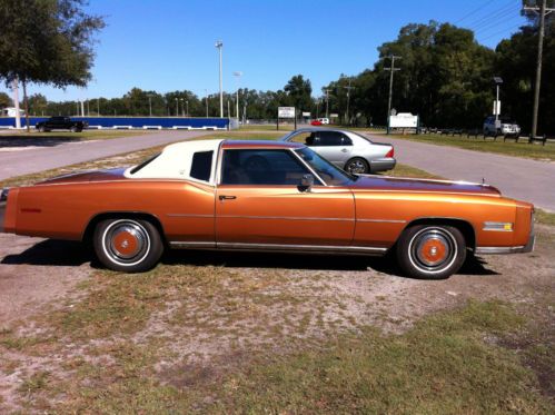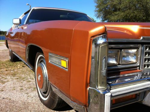 ONE OWNER 1978 Cadillac Eldorado FLORIDA CAR I am selling this one owner 1978 Cadillac Eldorado with 100,051 original miles. Spent its entire life in Florida. All original. Includes original Title, Owners Manual and Warranty Card. Bought locally in Tampa. Runs and drives good. Air conditioning works. Please see pictures for clarification of condition. Hood latch handle is broken. New tires (maybe 200 miles on tires). Power windows, power seats, power pull down, all functioning. Can be seen in the Brandon, FL area and also this weekend at the Zephyrhills Auto Show. Partial proceeds will benefit a local animal rescue I have been working with for over a decade. Payments in certified funds only (or cash). Can help with shipping if the car needs to be dropped off within the bay area. Close to I-75 and very accessible for car haulers. Picture Pack is available upon request. Please include your email address. |