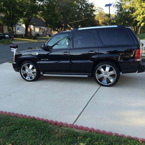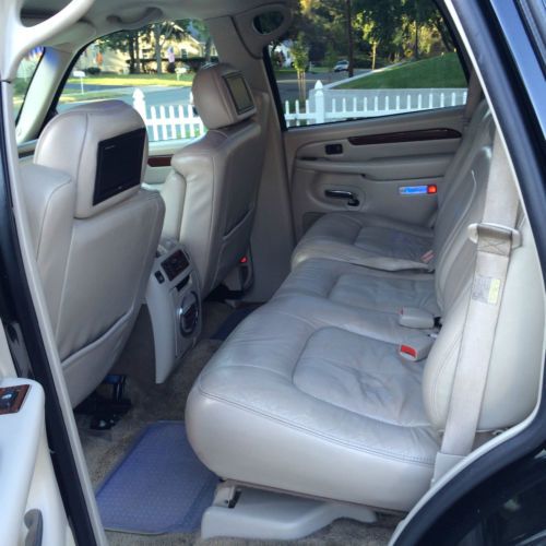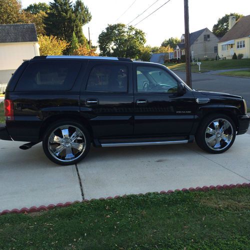 this is 2002 black cadillac escalade black with 24 inch rims and tire remote start navigation dvd screen back seat 2 tv and lot more ...very good truch i buy brand new cadillac so i dont need this one ... have onley 98000 miles... any more qustin please call me on 6094740850 give me ur best offer call me 6am to 8 pm ....